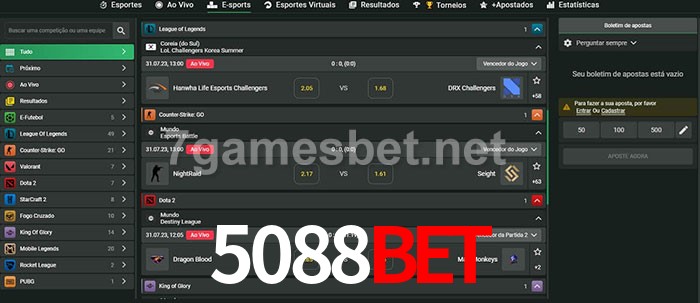 O 5088Bet oferece uma grande seleção de opções de apostas em e-sports com probabilidades competitivas